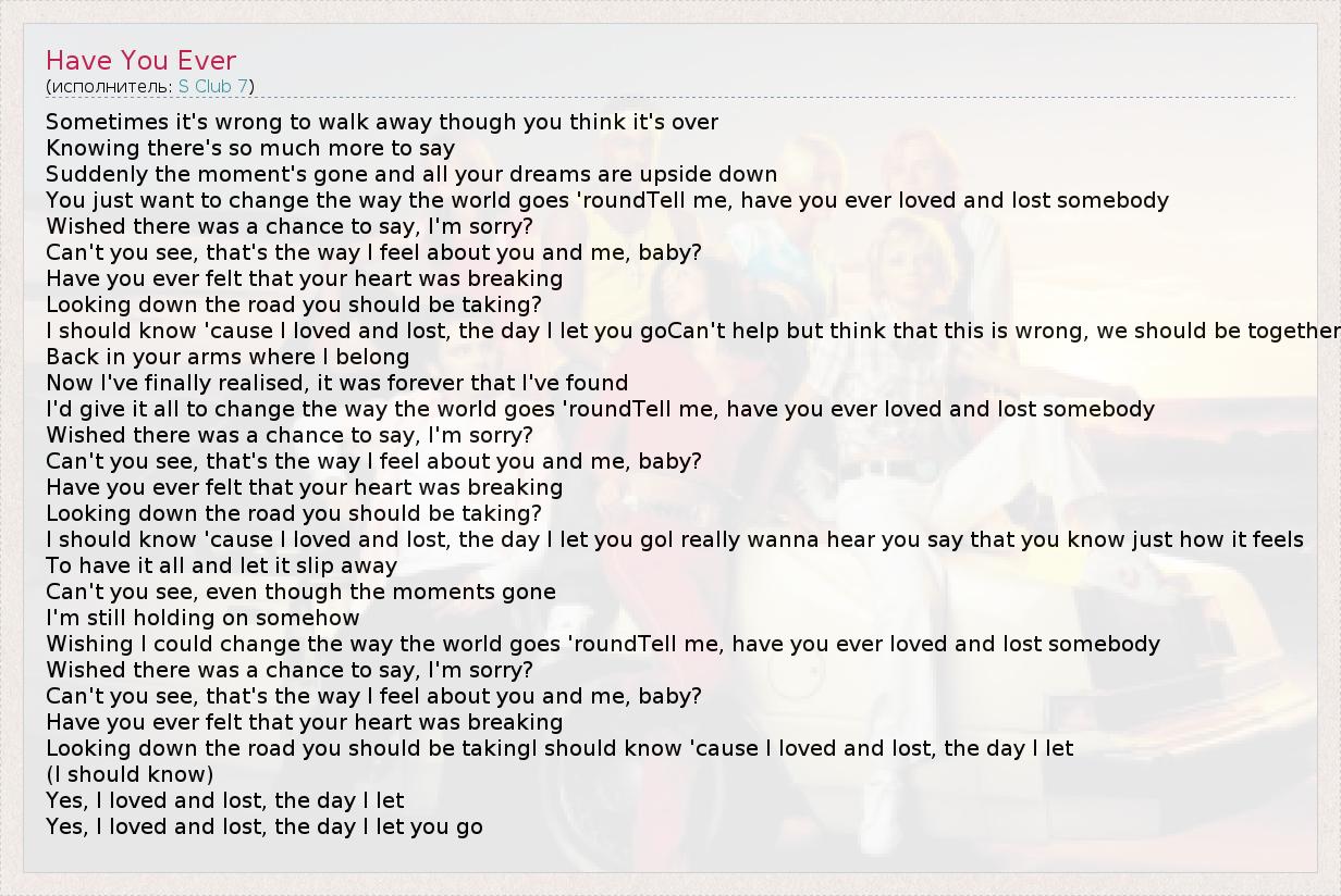 А как ты думаешь, о чем песня "Have You Ever" ?