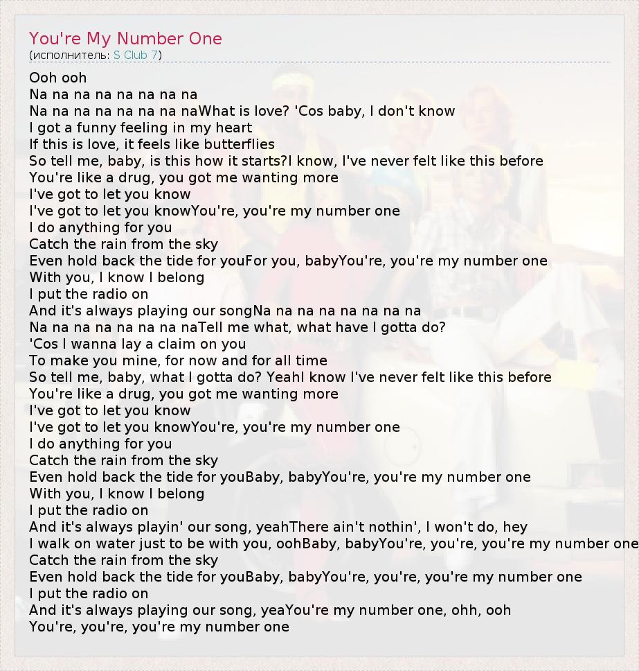 А как ты думаешь, о чем песня "You're My Number One" ?