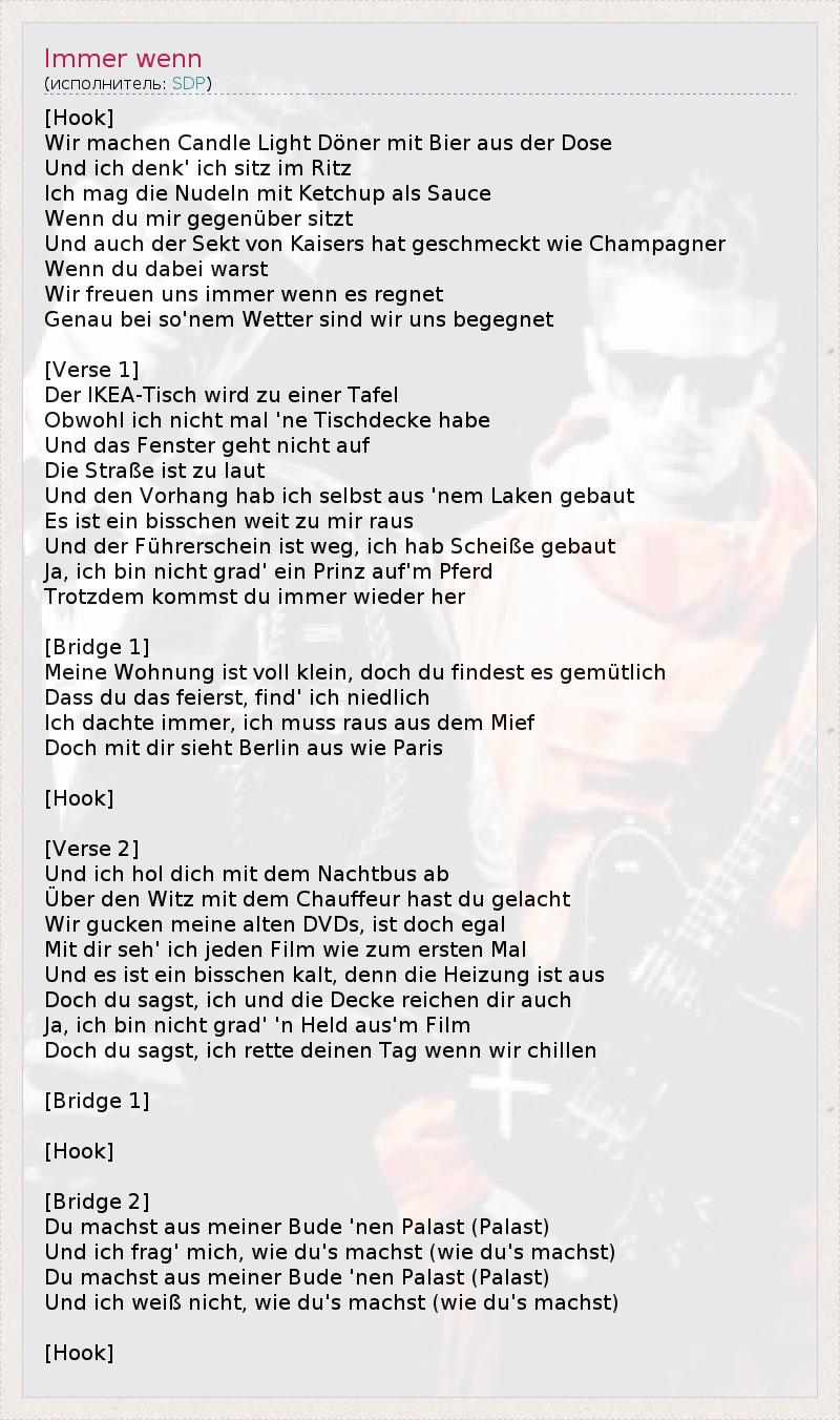 А как ты думаешь, о чем песня "Immer wenn" ?