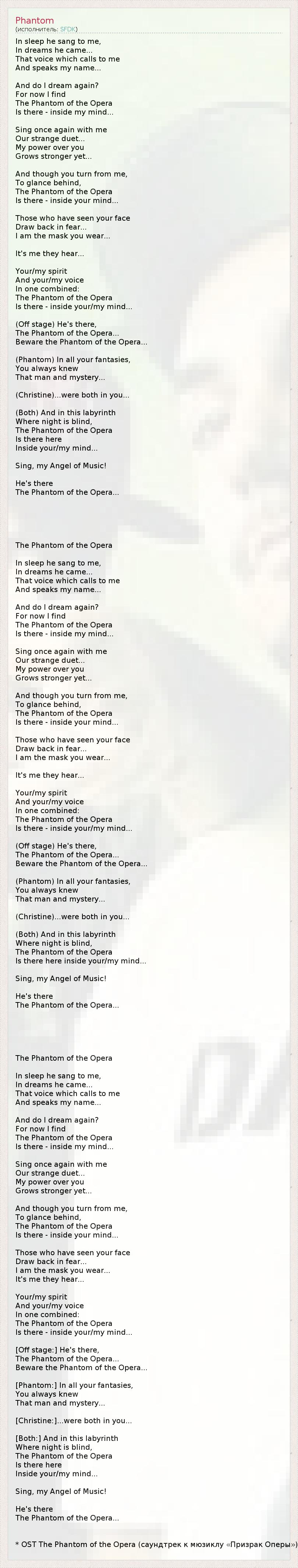 Призрак Оперы (перевод Полина Питенина из Красноярска)