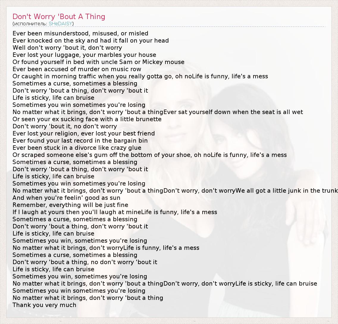 А как ты думаешь, о чем песня "Don't Worry 'Bout A Thing" ?
