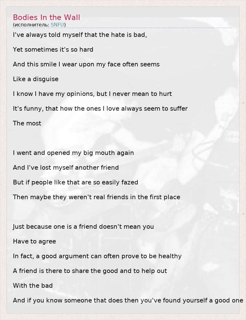 А как ты думаешь, о чем песня "Bodies In the Wall" ?