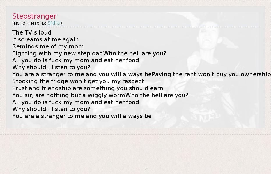 А как ты думаешь, о чем песня "Stepstranger" ?