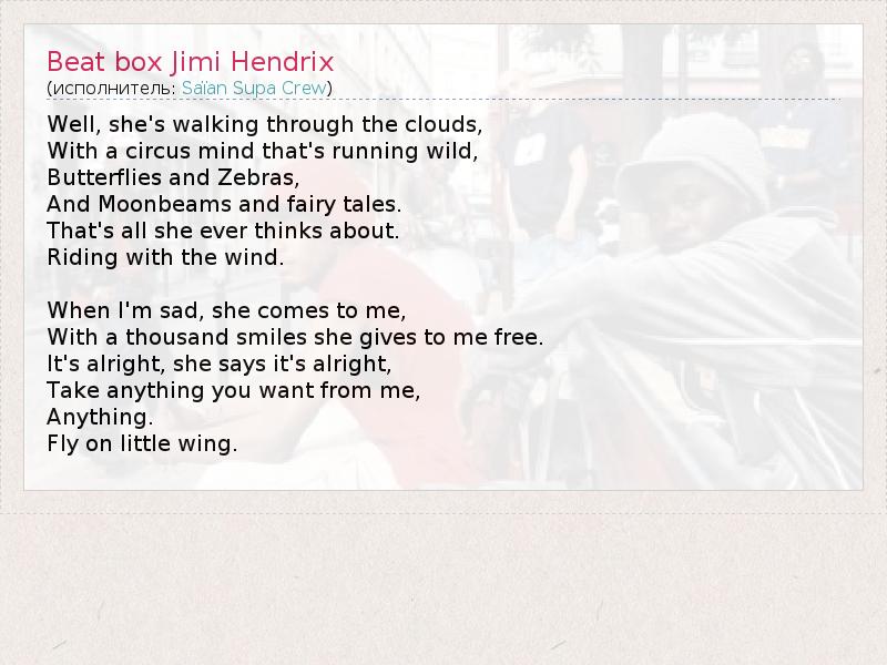 А как ты думаешь, о чем песня "Beat box Jimi Hendrix" ?