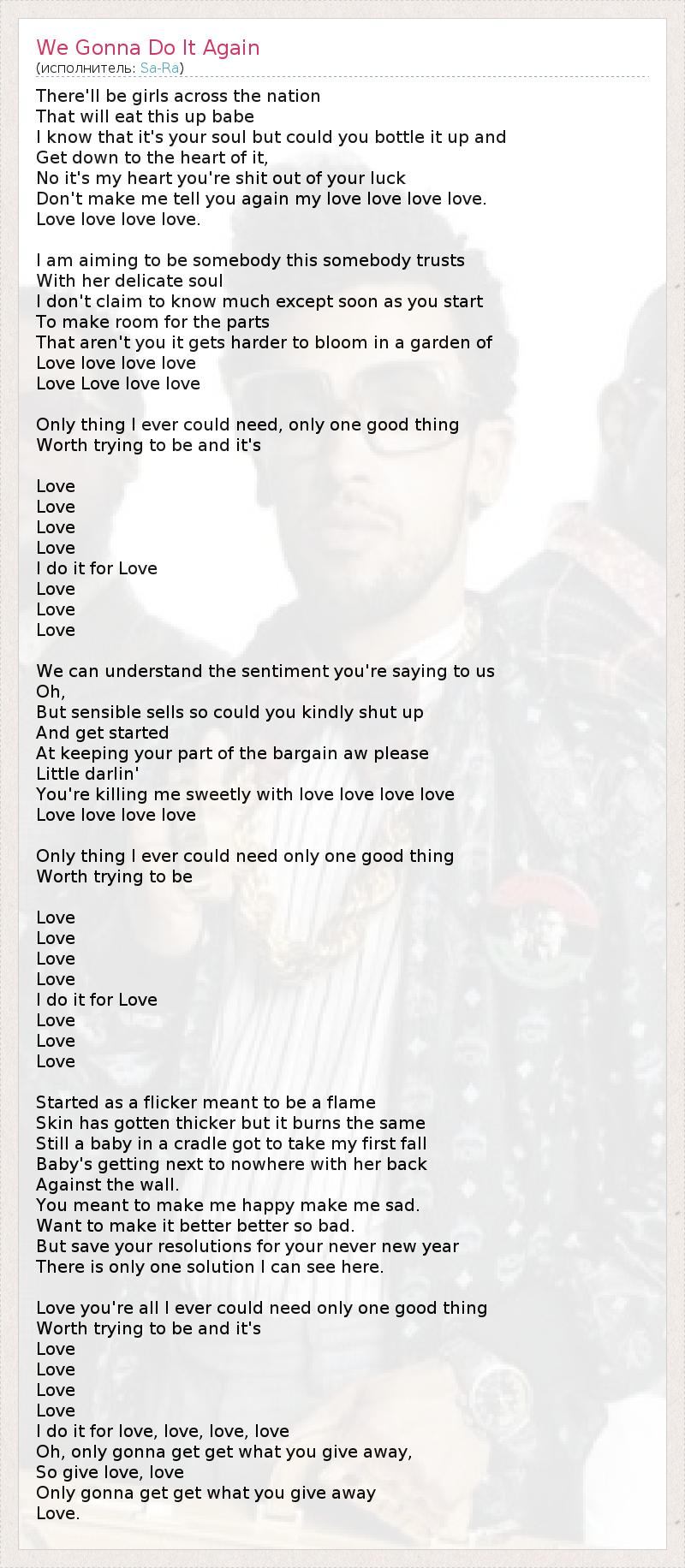 А как ты думаешь, о чем песня "We Gonna Do It Again" ?