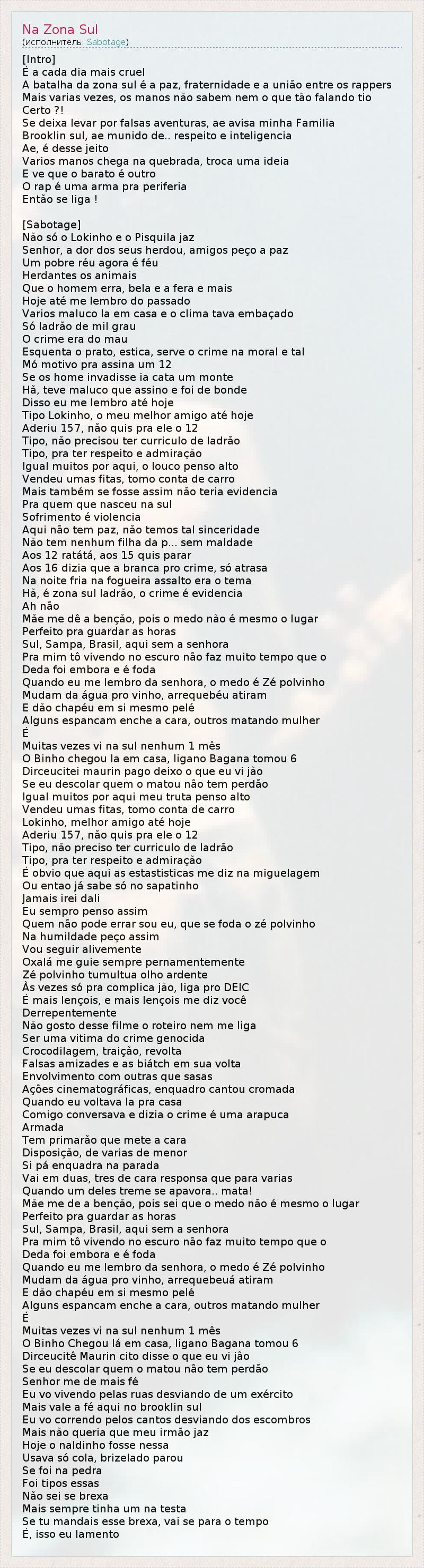 А как ты думаешь, о чем песня "Na Zona Sul" ?