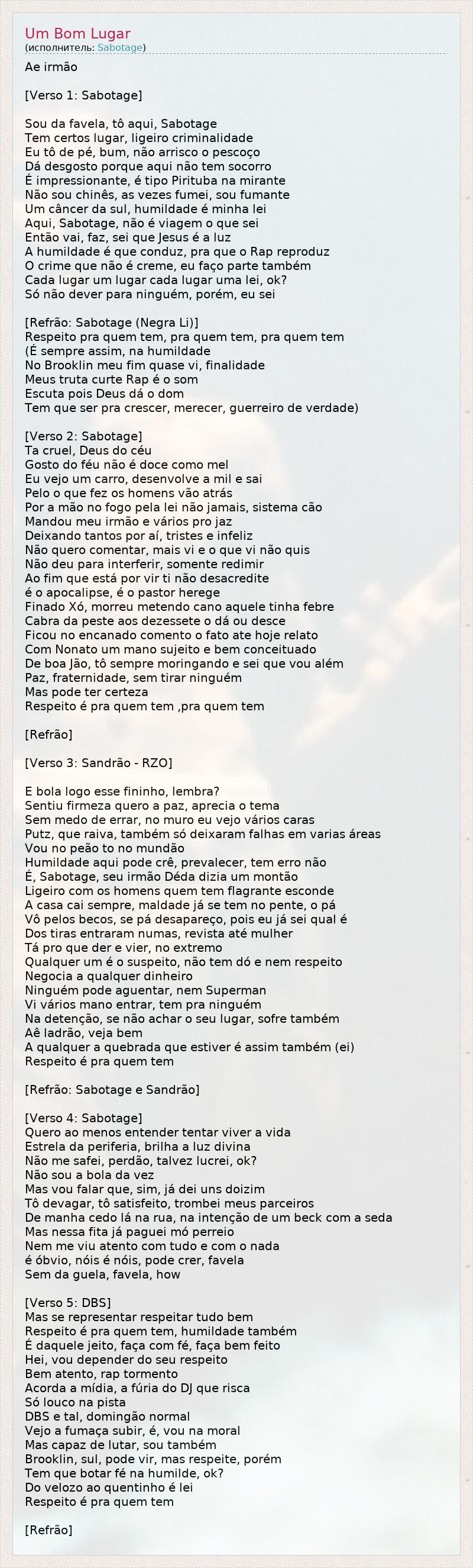 Sou da favela, tô aqui, Sabotage