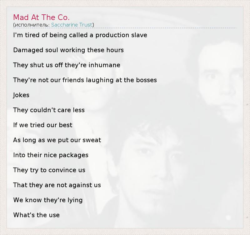А как ты думаешь, о чем песня "Mad At The Co." ?