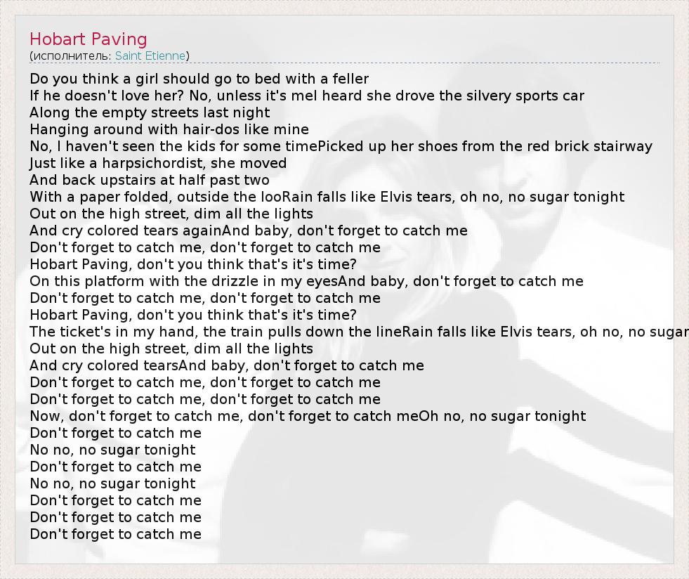 Now, don't forget to catch me, don't forget to catch meOh no, no sugar tonight