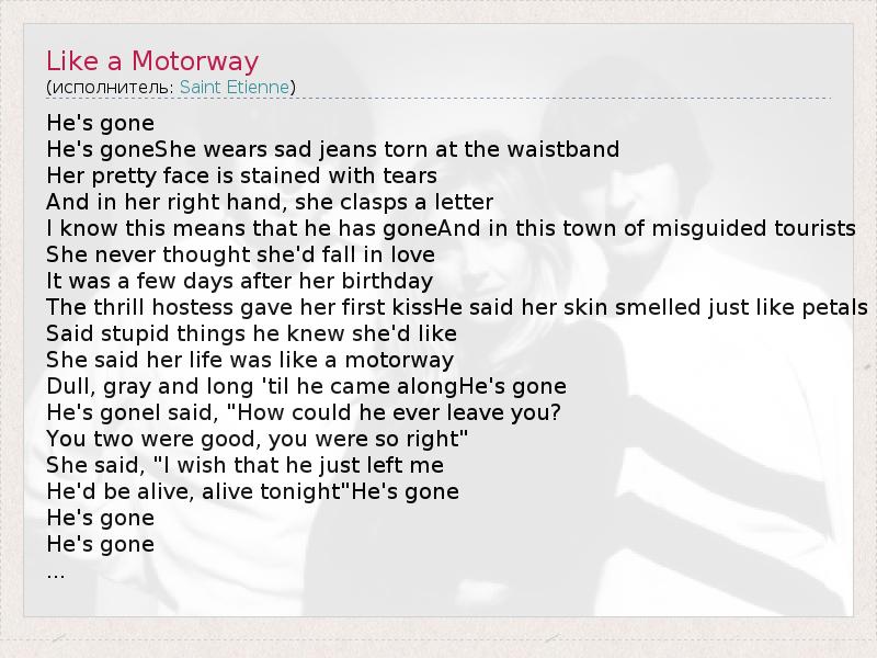 А как ты думаешь, о чем песня "Like a Motorway" ?