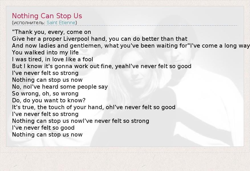 А как ты думаешь, о чем песня "Nothing Can Stop Us" ?