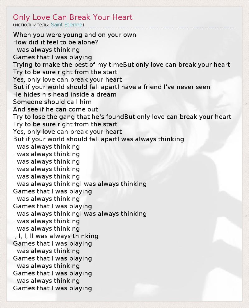 А как ты думаешь, о чем песня "Only Love Can Break Your Heart" ?