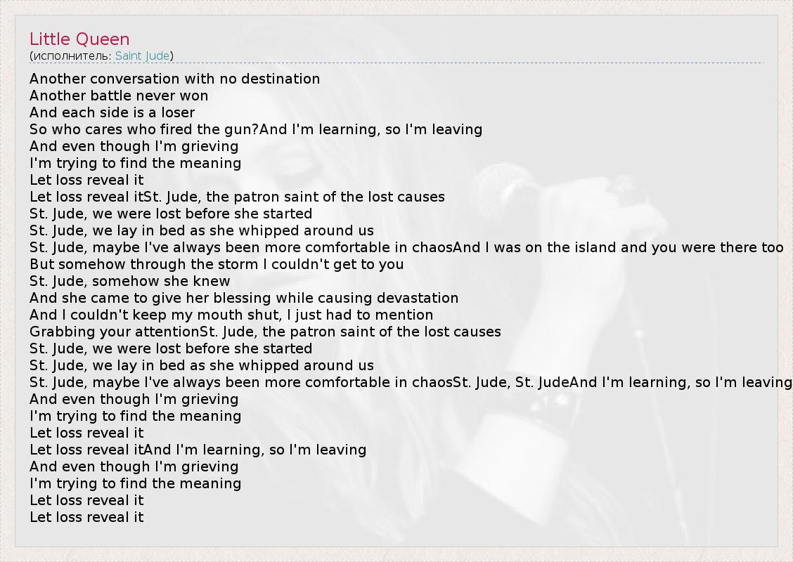 St. Jude, maybe I've always been more comfortable in chaosAnd I was on the island and you were there too