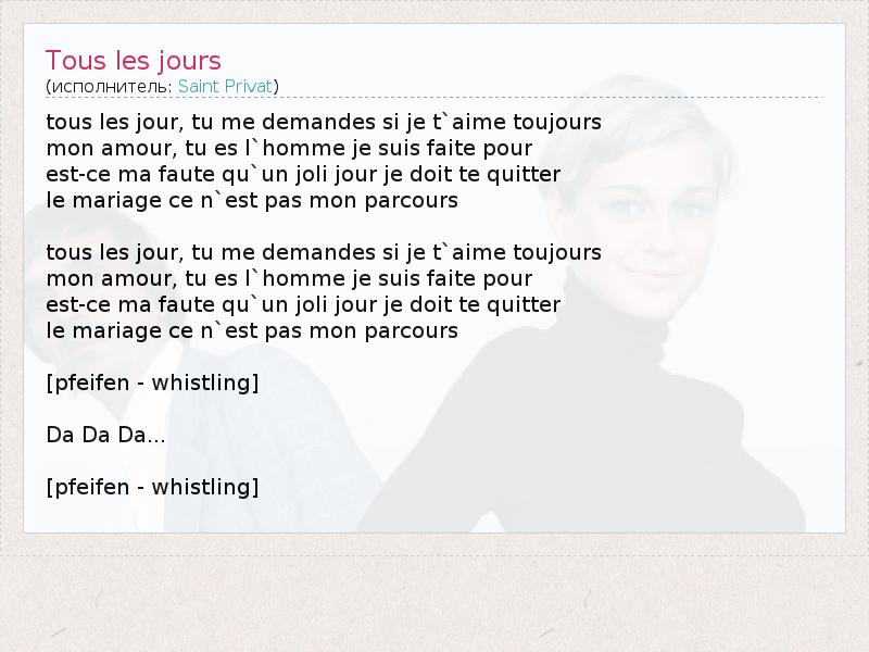 А как ты думаешь, о чем песня "Tous les jours" ?