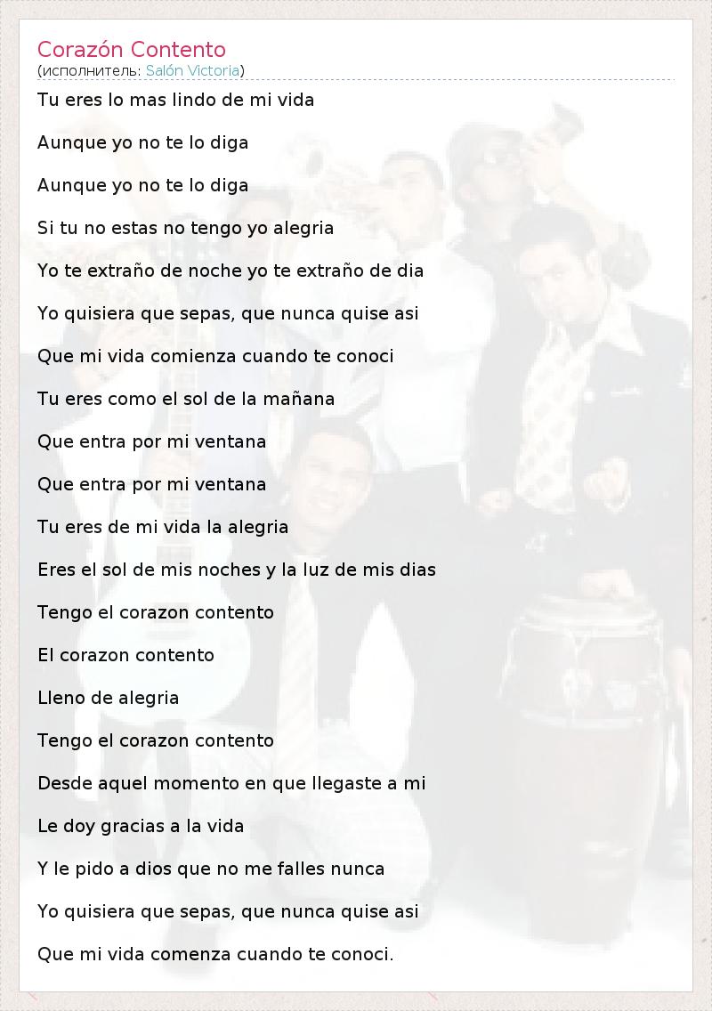 А как ты думаешь, о чем песня "Corazón Contento" ?