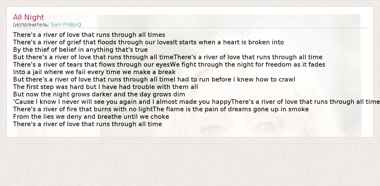 But there's a river of love that runs through all timeThere's a river of love that runs through all time
