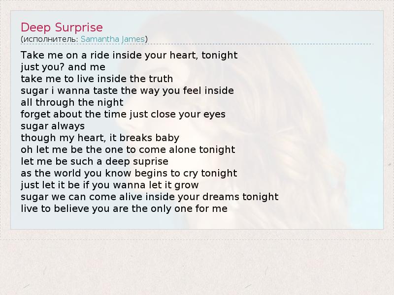А как ты думаешь, о чем песня "Deep Surprise" ?