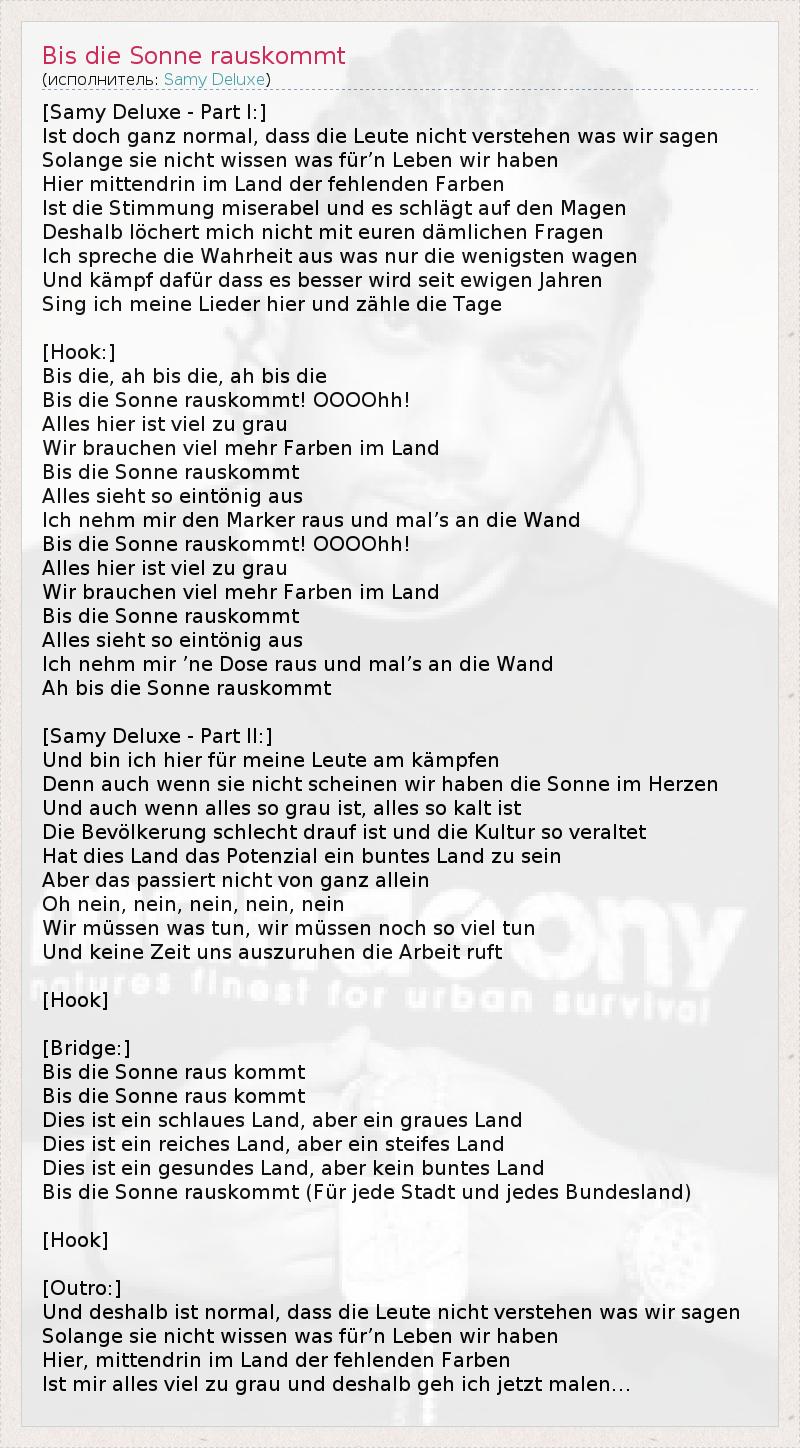 ГлавнаяИсполнителиSamy DeluxeBis die Sonne rauskommt