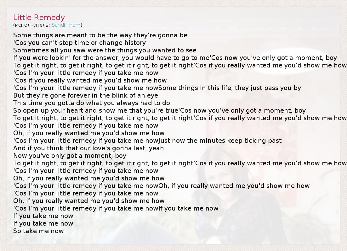 А как ты думаешь, о чем песня "Little Remedy" ?