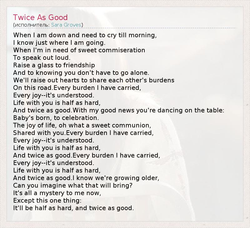 А как ты думаешь, о чем песня "Twice As Good" ?