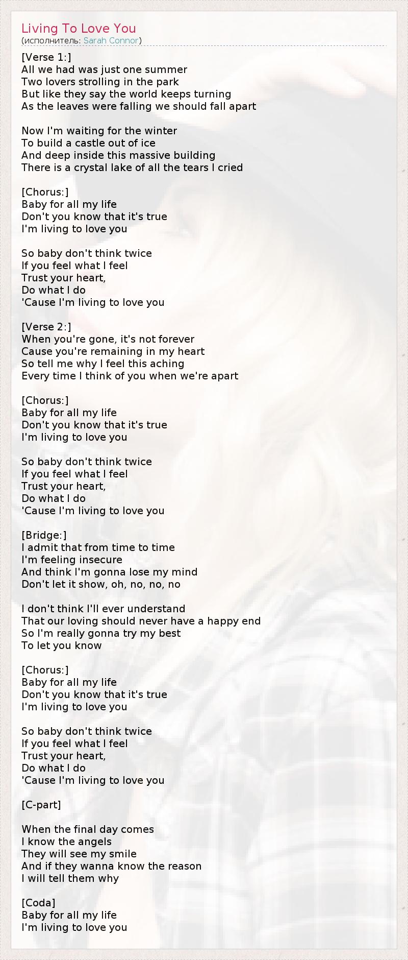 А как ты думаешь, о чем песня "Living To Love You" ?