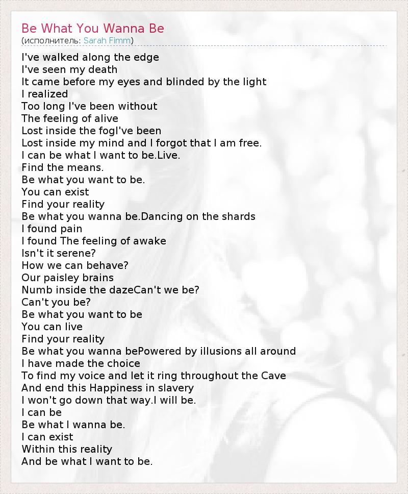 А как ты думаешь, о чем песня "Be What You Wanna Be" ?