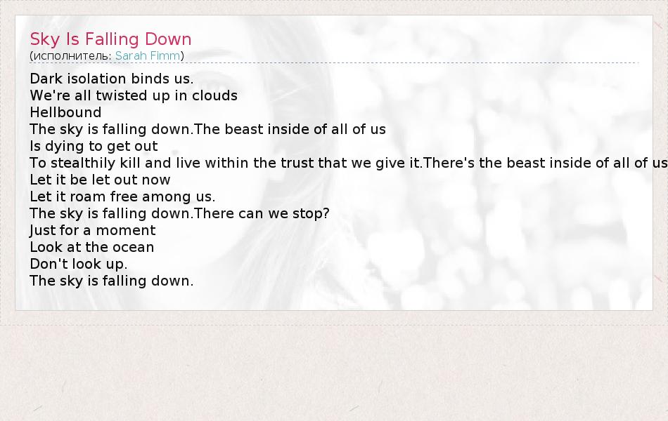 А как ты думаешь, о чем песня "Sky Is Falling Down" ?