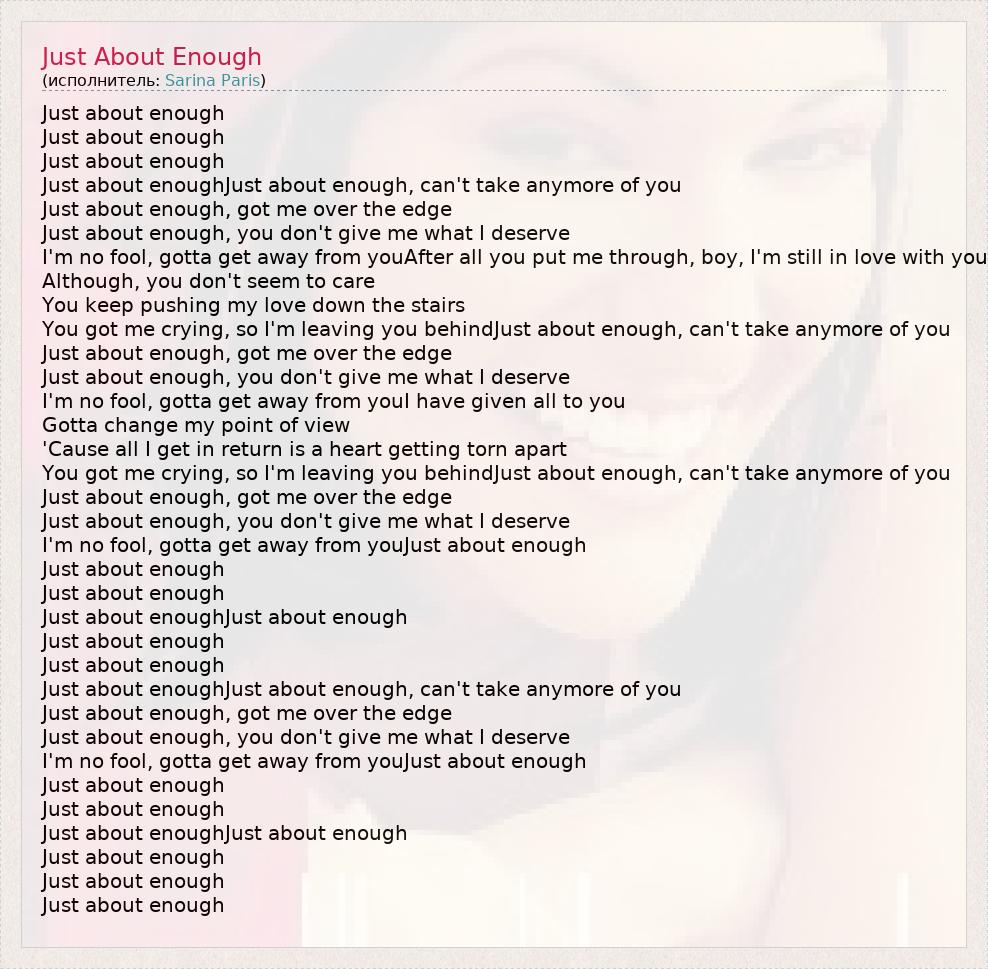 Just about enough, you don't give me what I deserve