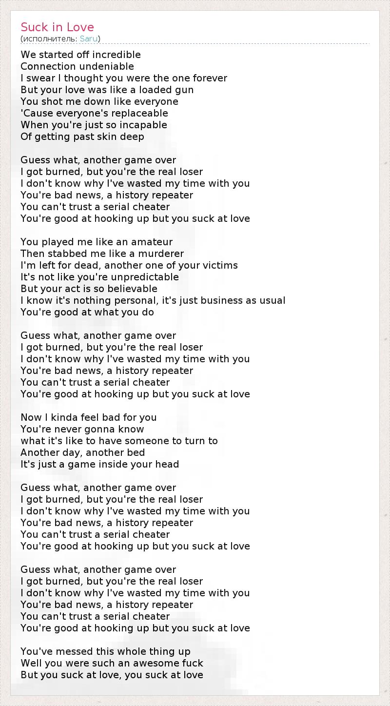 А как ты думаешь, о чем песня "Suck in Love" ?