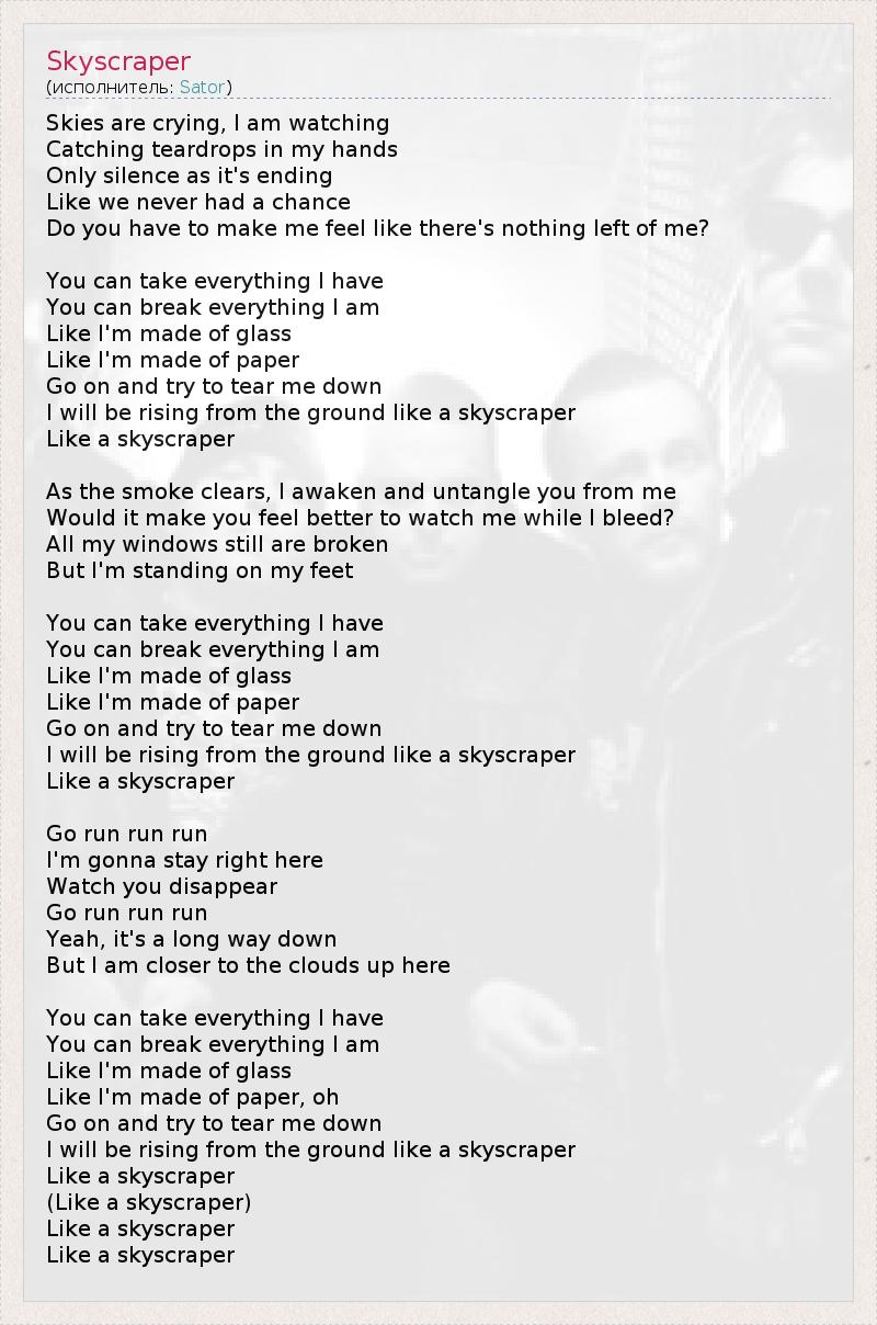 А как ты думаешь, о чем песня "Skyscraper" ?