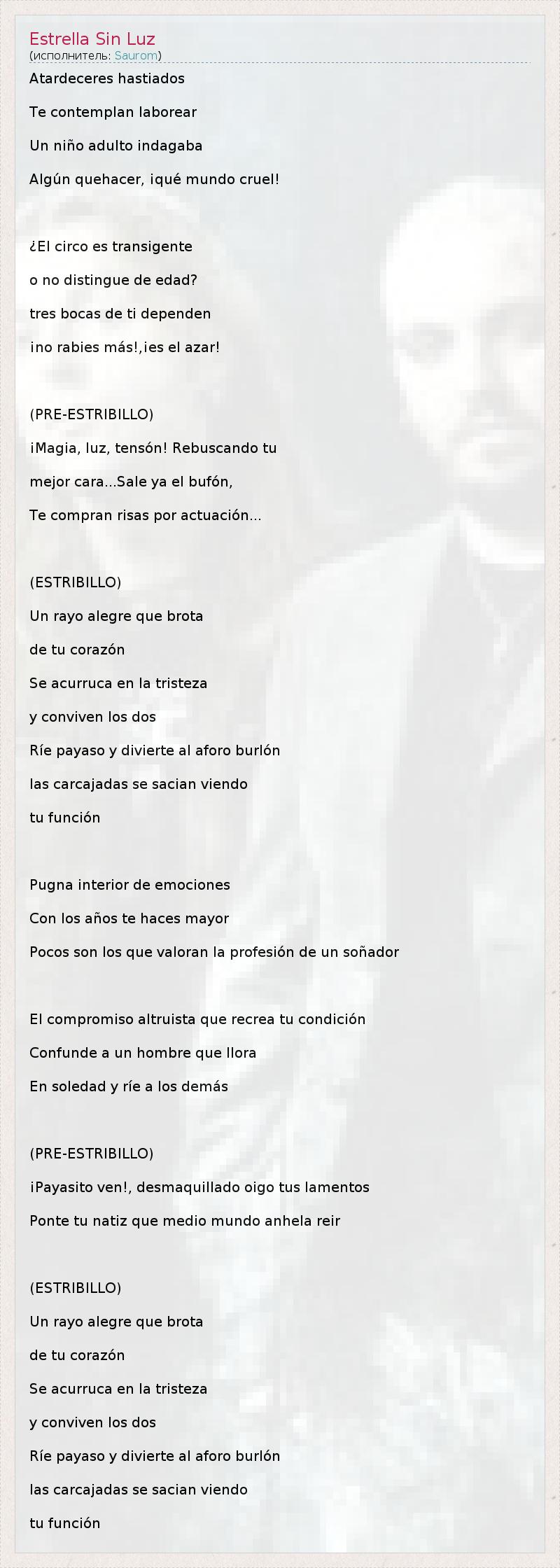 А как ты думаешь, о чем песня "Estrella Sin Luz" ?
