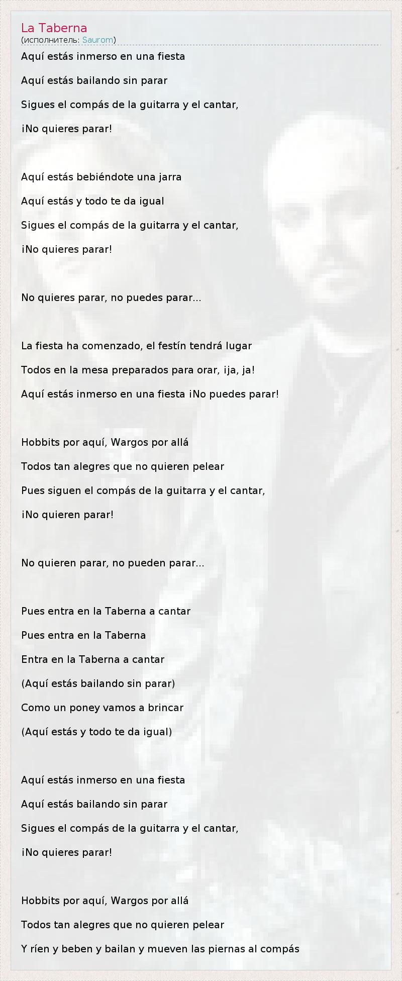 А как ты думаешь, о чем песня "La Taberna" ?