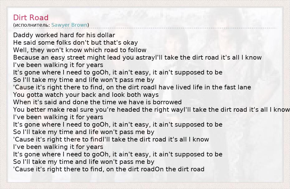 А как ты думаешь, о чем песня "Dirt Road" ?