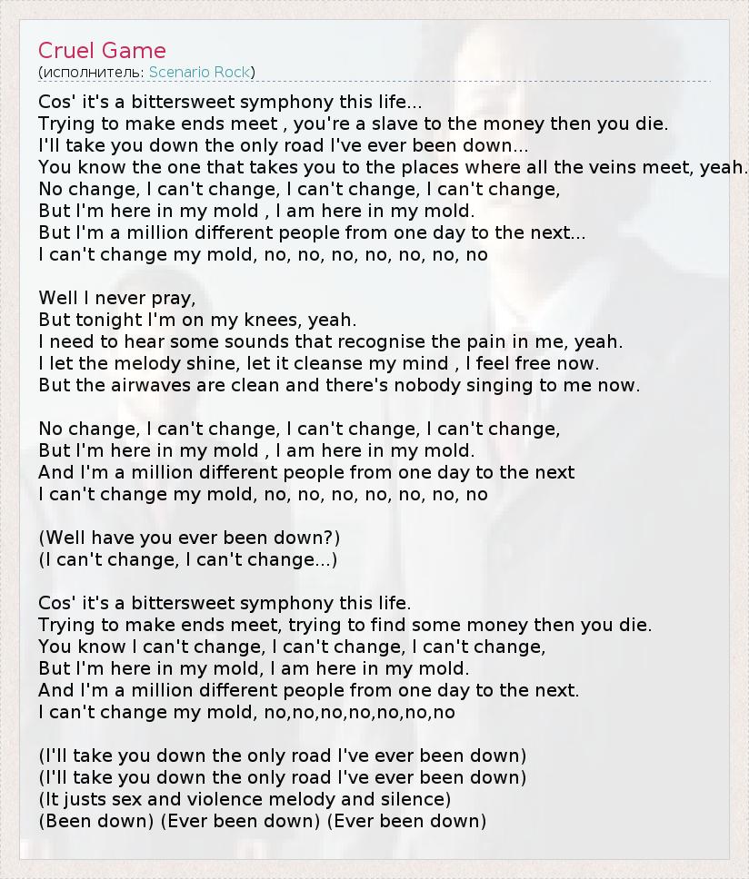 А как ты думаешь, о чем песня "Cruel Game" ?