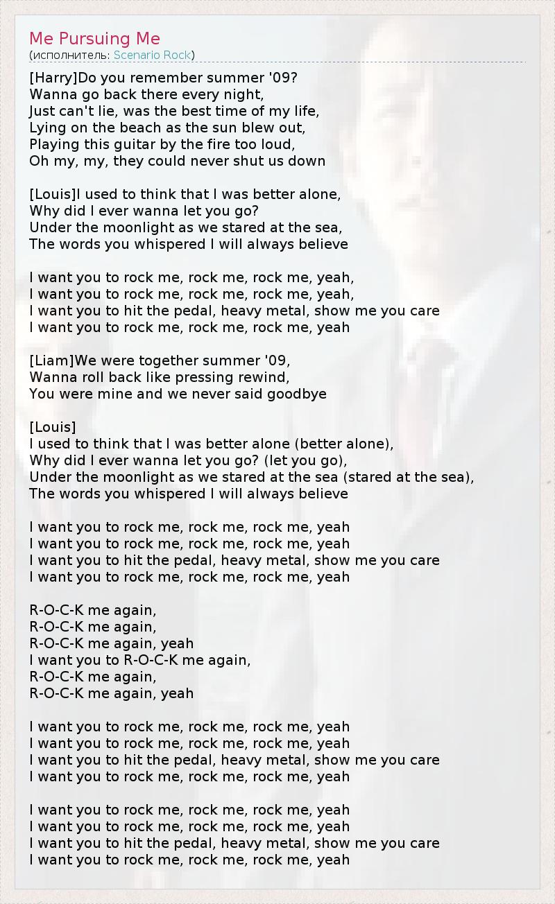 А как ты думаешь, о чем песня "Me Pursuing Me" ?
