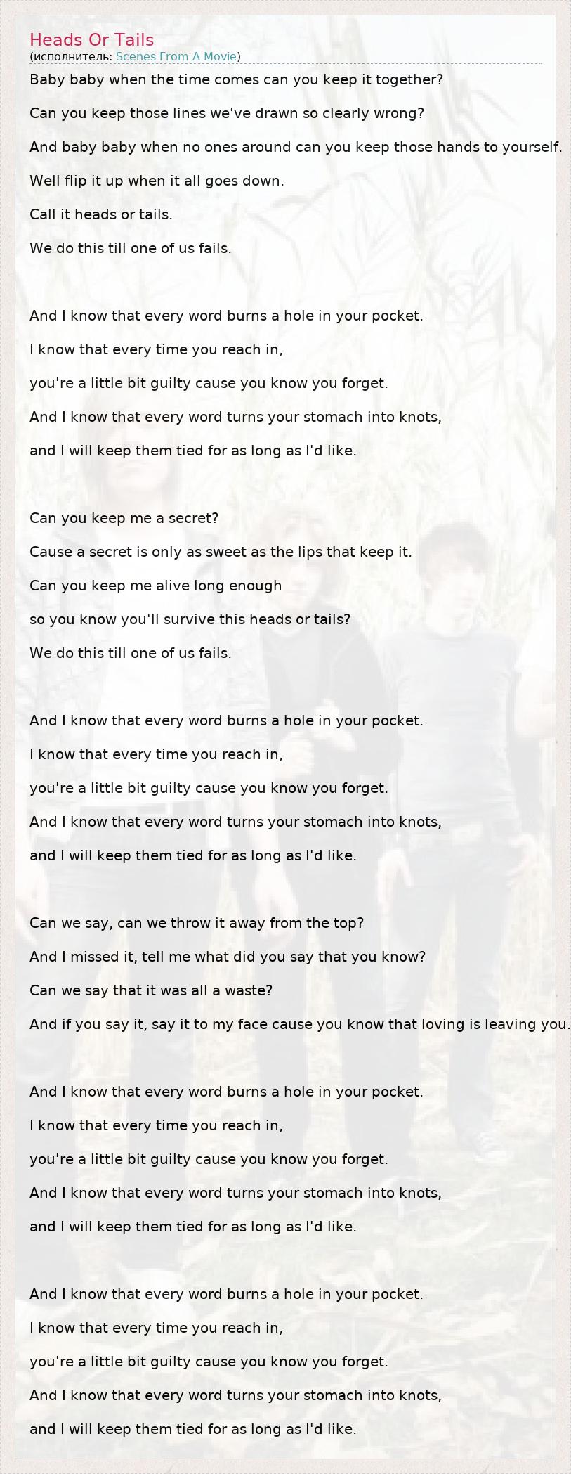 А как ты думаешь, о чем песня "Heads Or Tails" ?