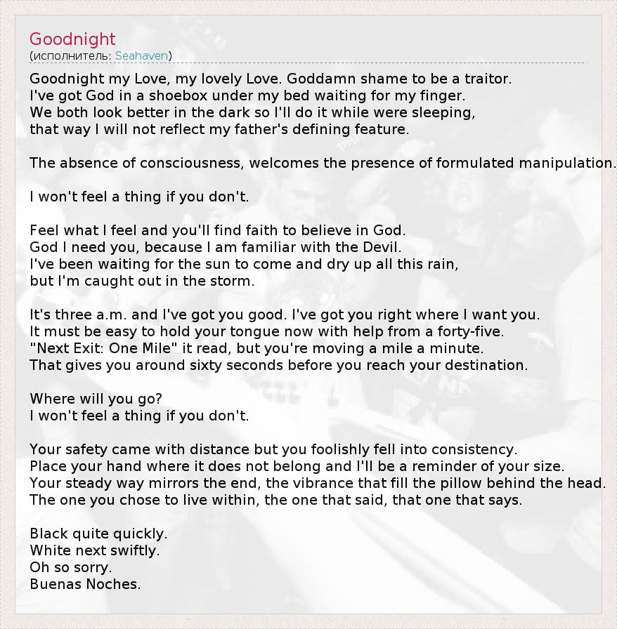 Спокойной ночи моя любовь, моя прекрасная любовь . Черт стыдно быть предателем .