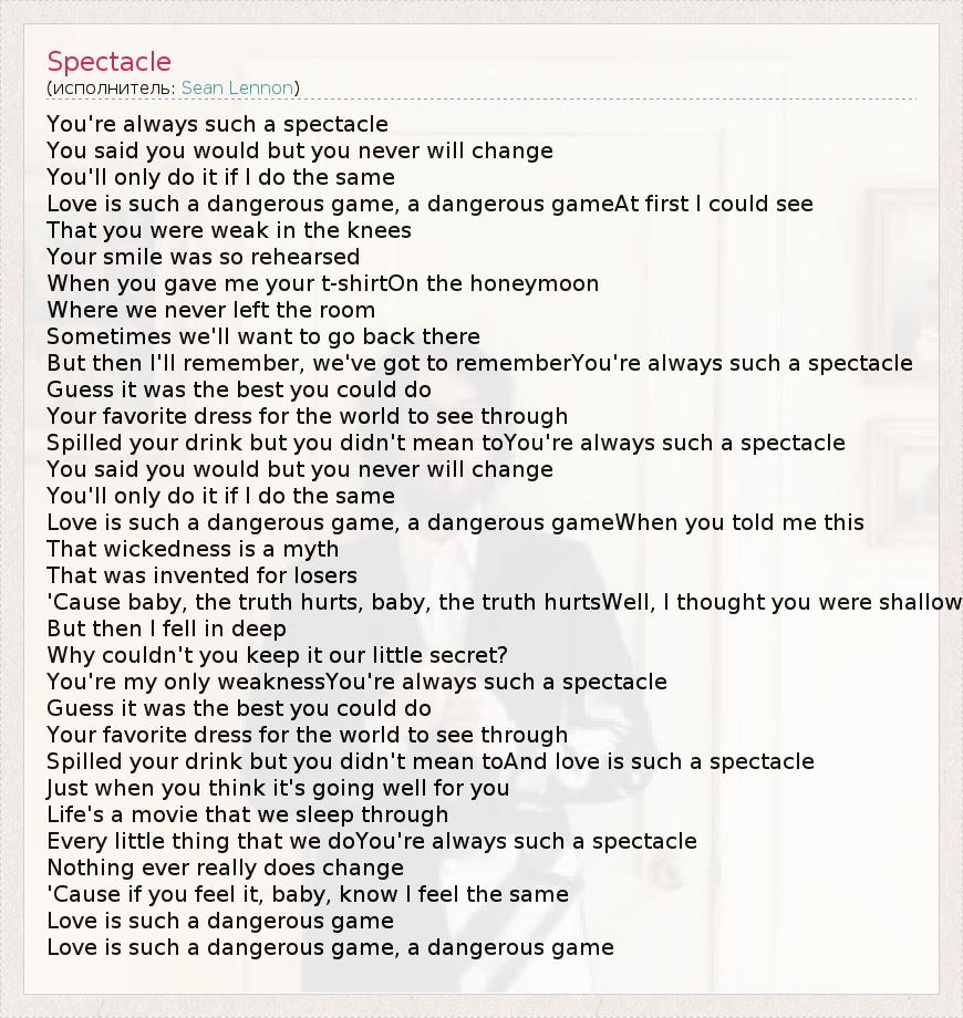А как ты думаешь, о чем песня "Spectacle" ?
