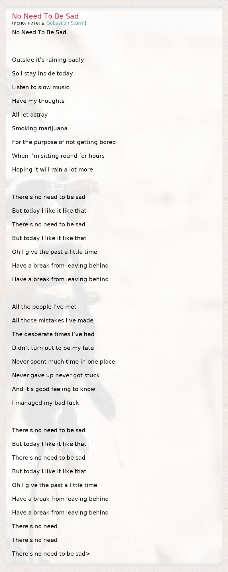 No Need To Be Sad
