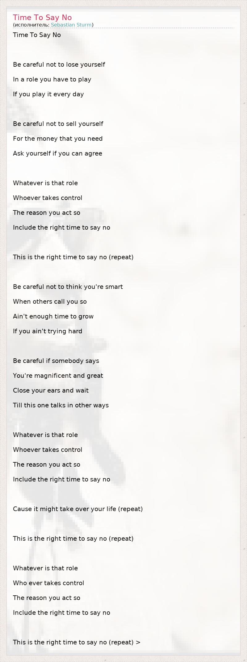 А как ты думаешь, о чем песня "Time To Say No" ?