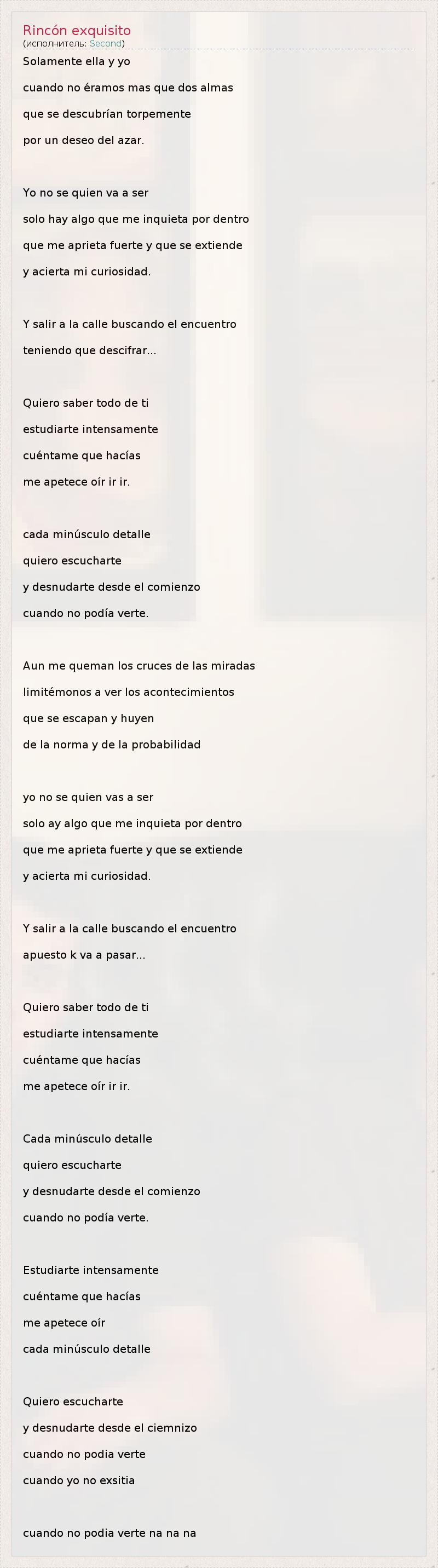 А как ты думаешь, о чем песня "Rincón exquisito" ?