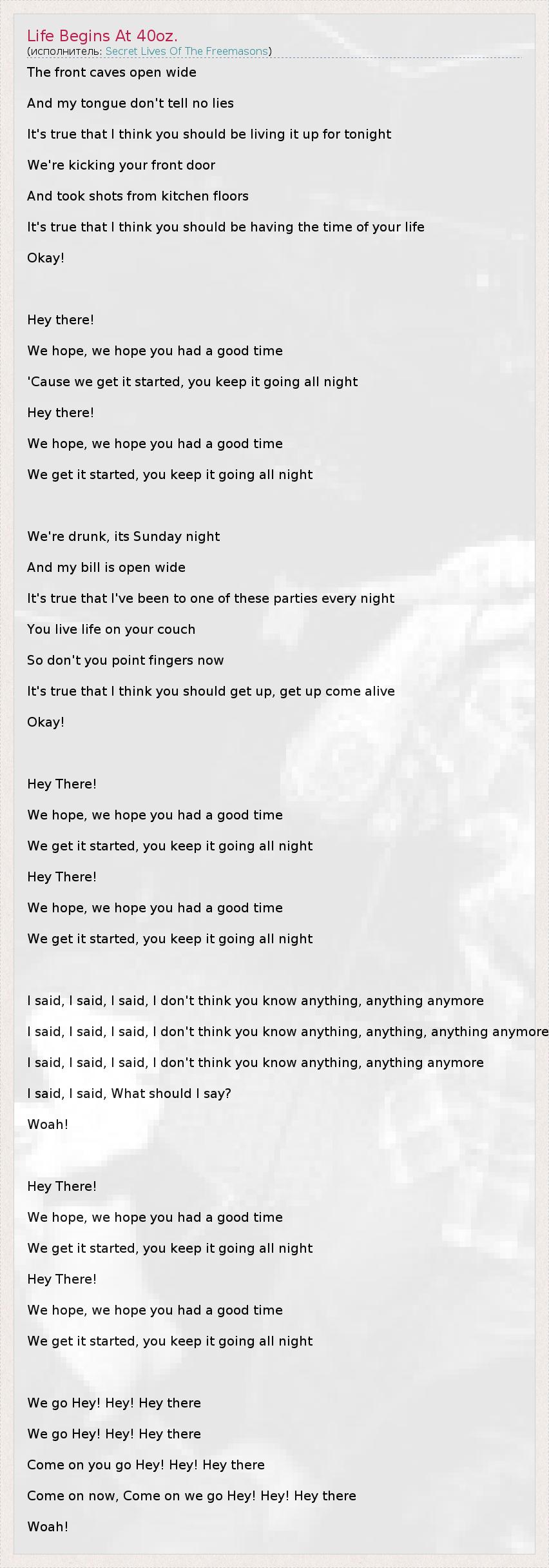 А как ты думаешь, о чем песня "Life Begins At 40oz." ?