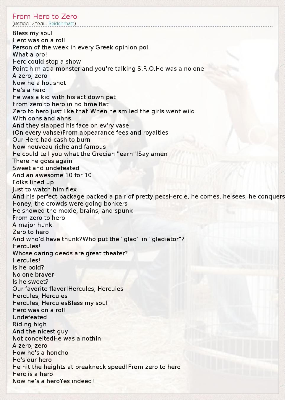 А как ты думаешь, о чем песня "From Hero to Zero" ?