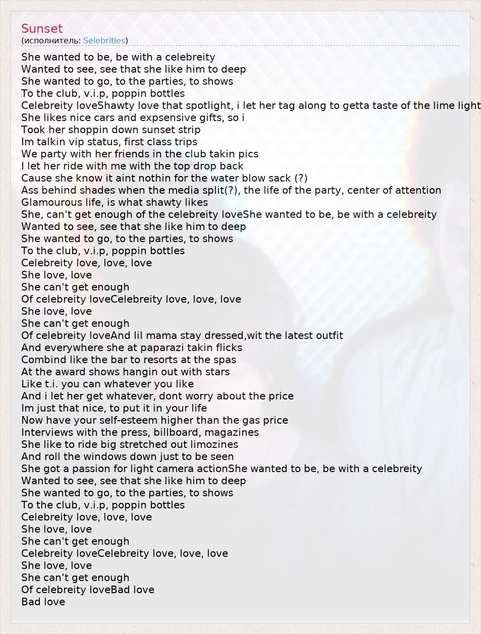 Celebreity loveShawty love that spotlight, i let her tag along to getta taste of the lime light