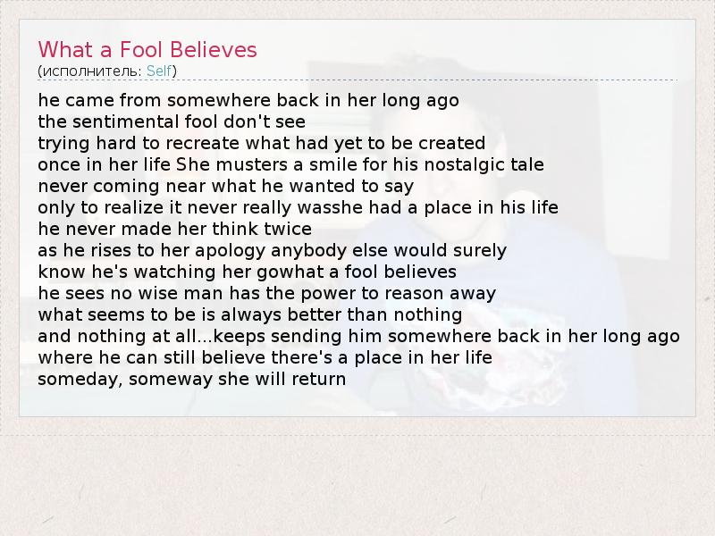 А как ты думаешь, о чем песня "What a Fool Believes" ?