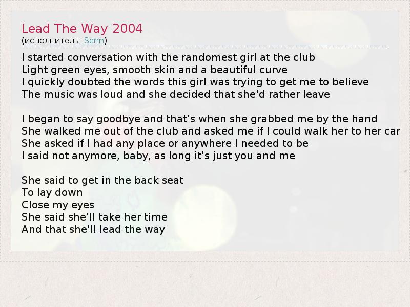 А как ты думаешь, о чем песня "Lead The Way 2004" ?