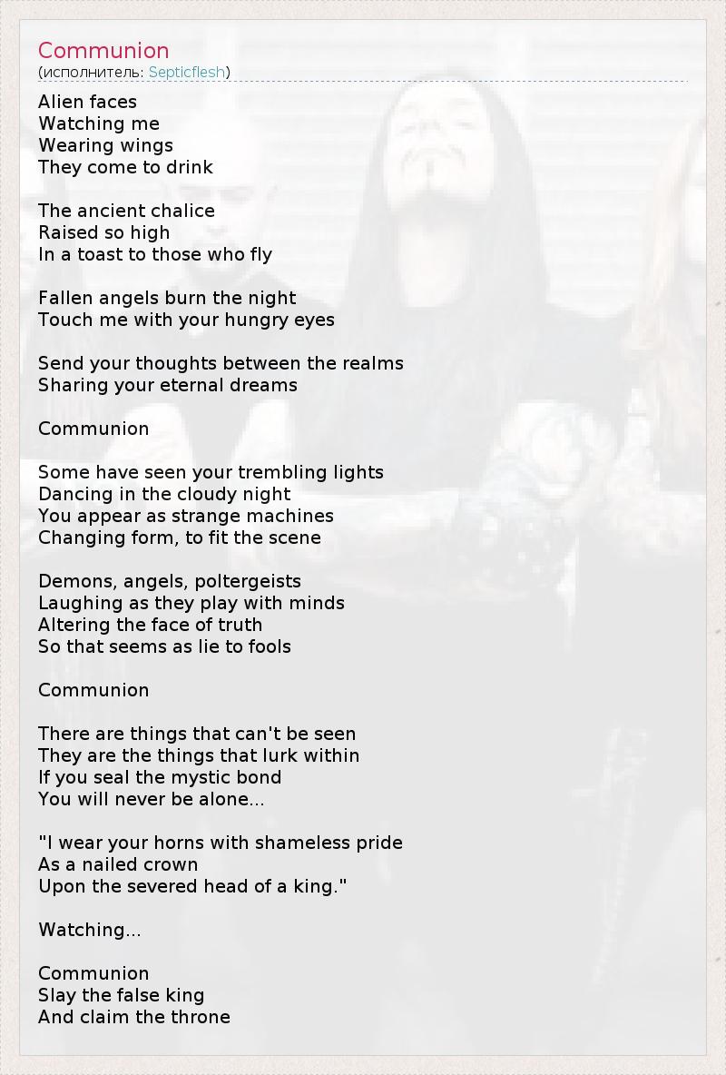 А как ты думаешь, о чем песня "Communion" ?