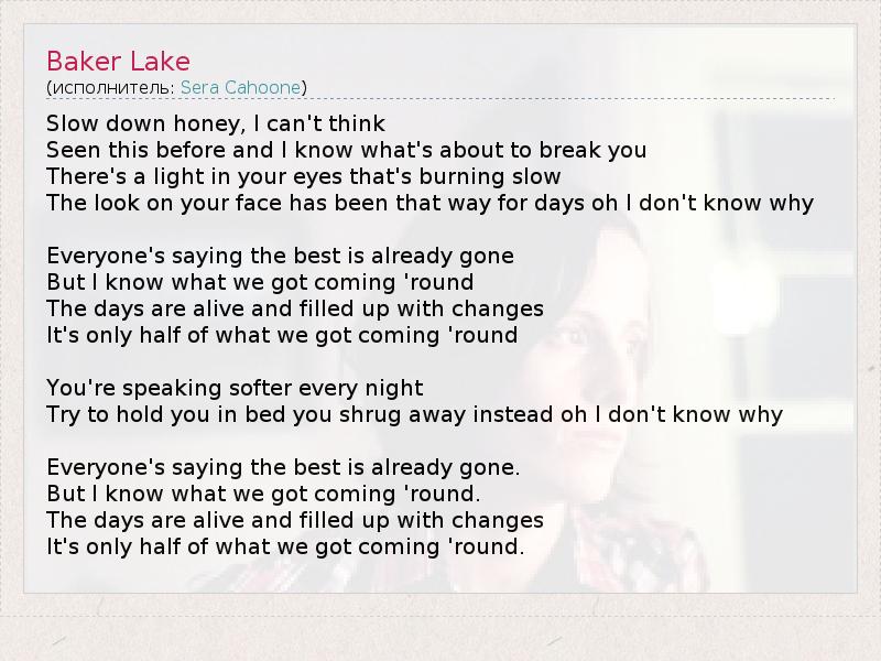 А как ты думаешь, о чем песня "Baker Lake" ?
