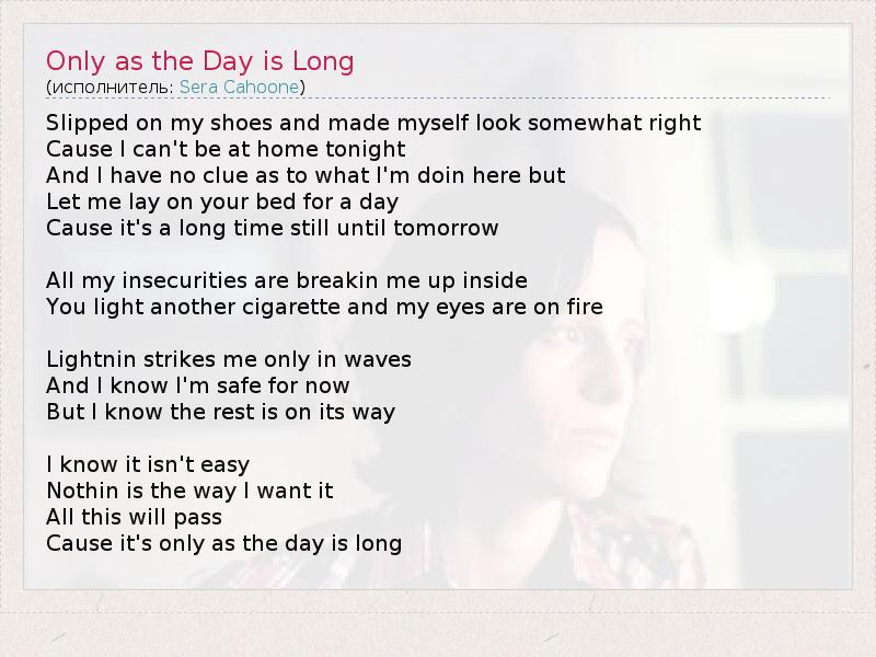 А как ты думаешь, о чем песня "Only as the Day is Long" ?