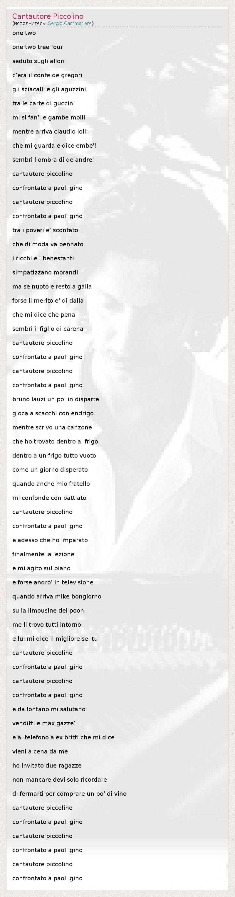 А как ты думаешь, о чем песня "Cantautore Piccolino" ?